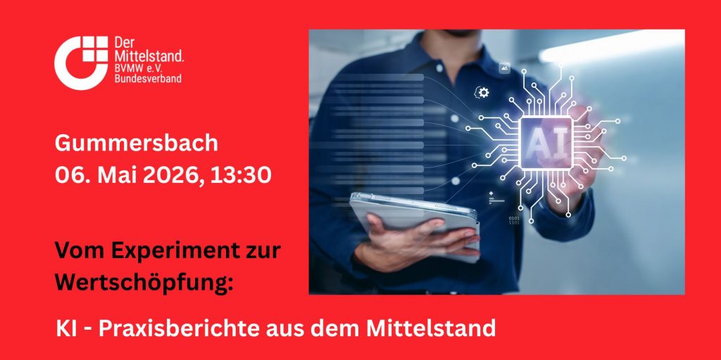 Zwei Jahre nach dem ersten großen KI-Hype ist ein deutlicher Wandel erkennbar: Während damals vor allem Visionen und Prototypen im Mittelpunkt standen, berichten heute mittelständische Unternehmen selbst von konkreten Erfolgen, produktiven Anwendungen und messbaren Ergebnissen. Genau hier setzt die Veranstaltung des BVMW an.